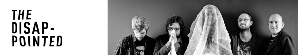 The Disappointed are five grown men with child hearts fighting their way through a crowded market the only way they know how: Telling whatever musical truth they stumble on. Dedicated to distilled honesty, un-apologetically flawed and human. Huge choruses, tight arrangements and heaps of little surprises. Jagged and lush at the same moment. The Disappointed will make you feel something. ... more